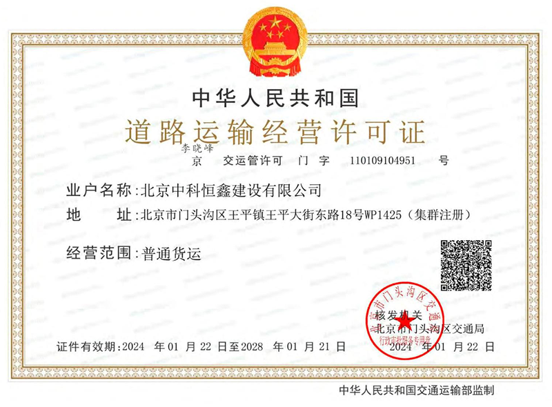 北京中科恒鑫建設有限公司證書