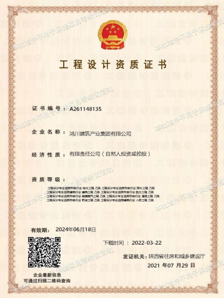 鴻川建筑產業集團有限公司證書