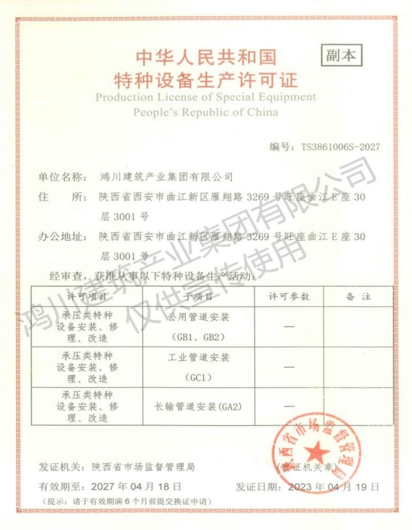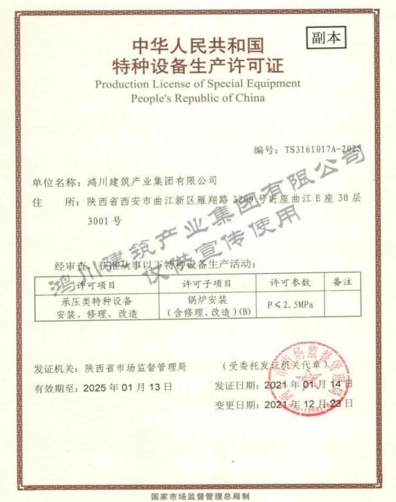 鴻川建筑產業集團有限公司資質